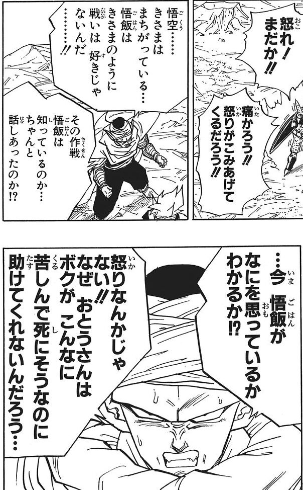 なんと、この未曾有の大ピンチをピッコロと悟飯だけで乗り切るのです。